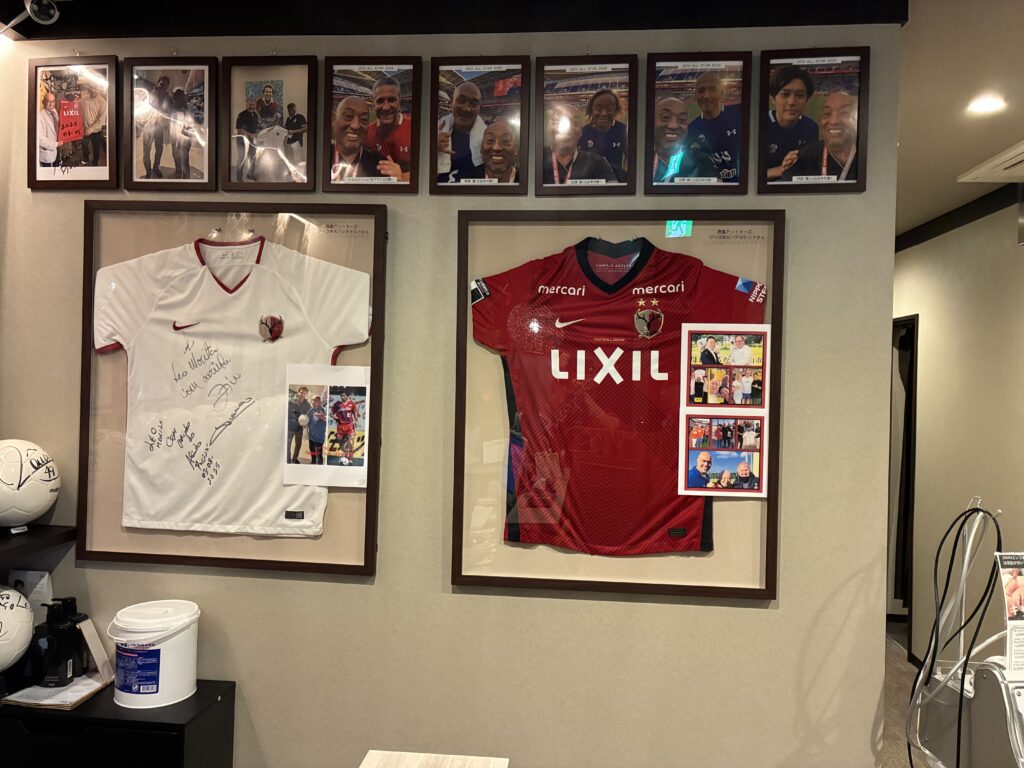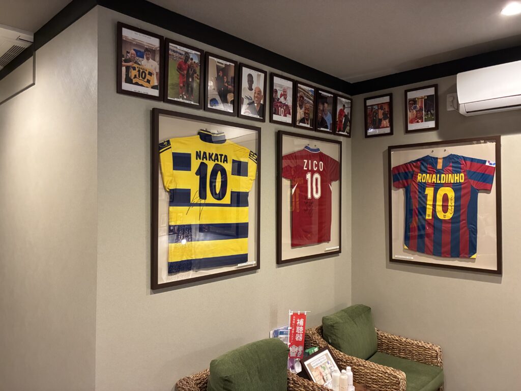 「ほぐし屋LEO本院」の待合室にはサッカー選手の写真やサインが展示してあります。